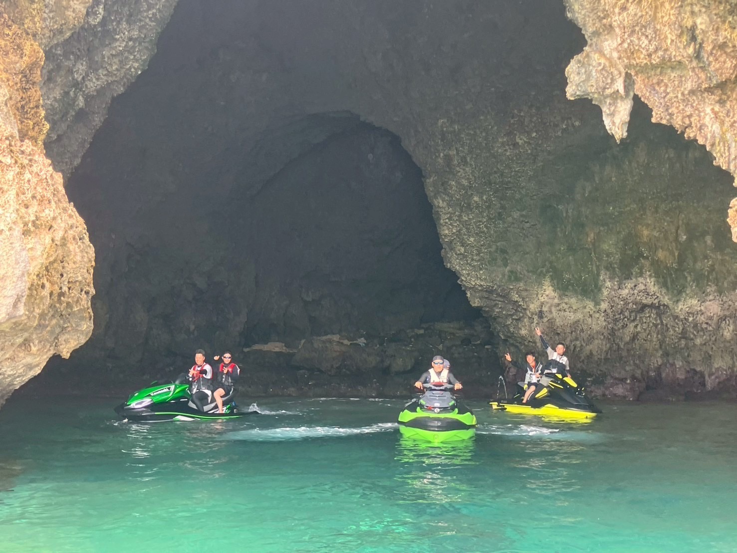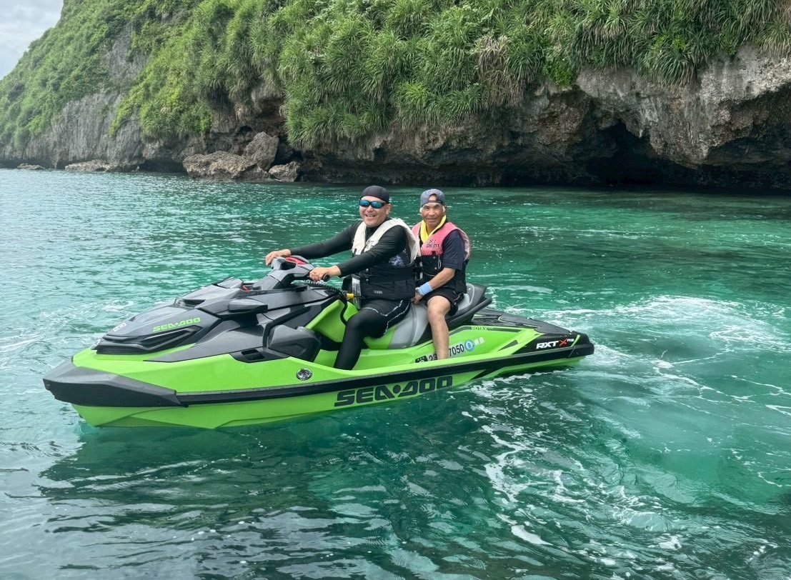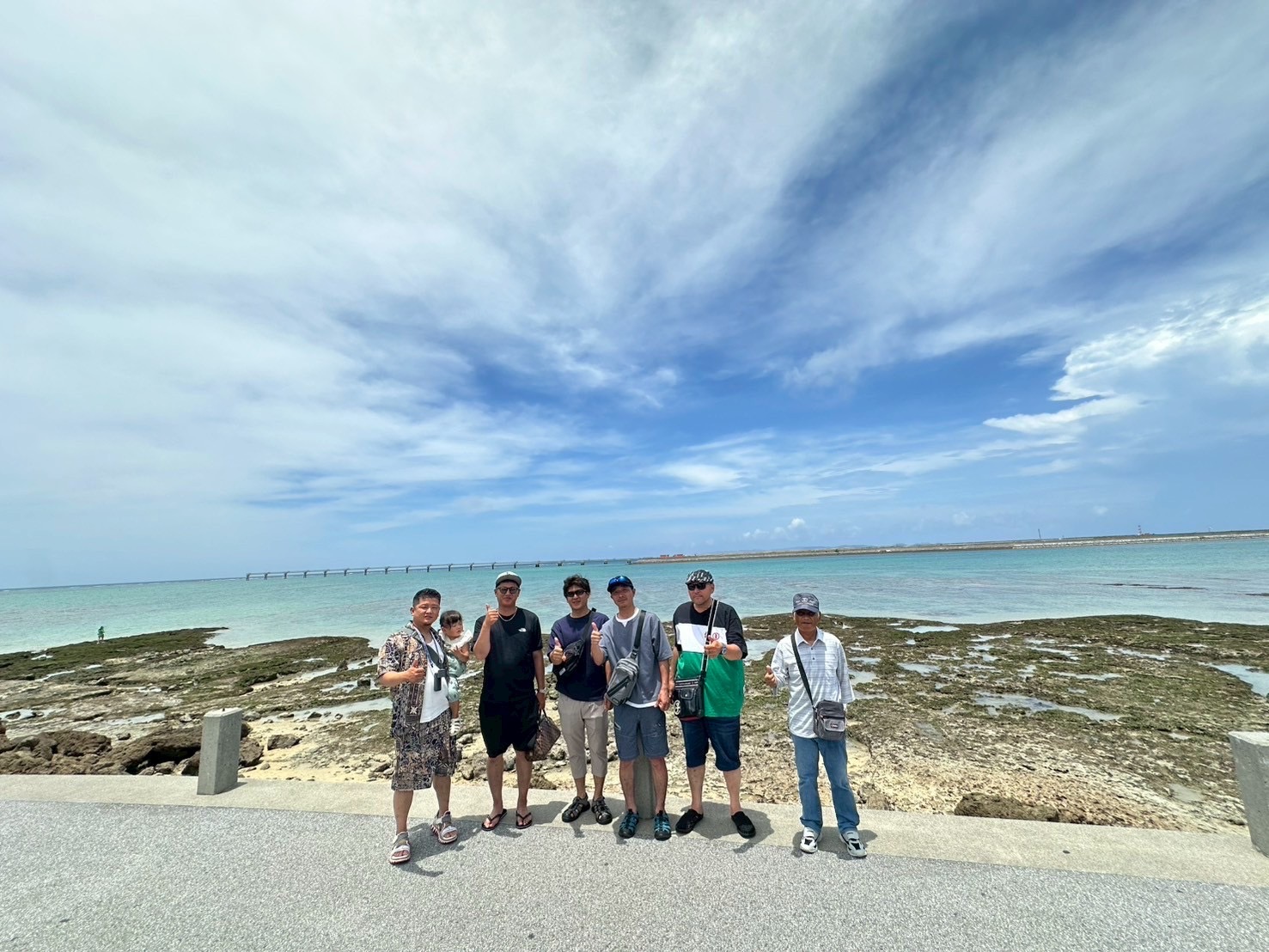 普段は解体工事現場で汗を流している私たちですが、美しい宮古ブルーの海を前に、みんな童心に返って大はしゃぎ。🌊